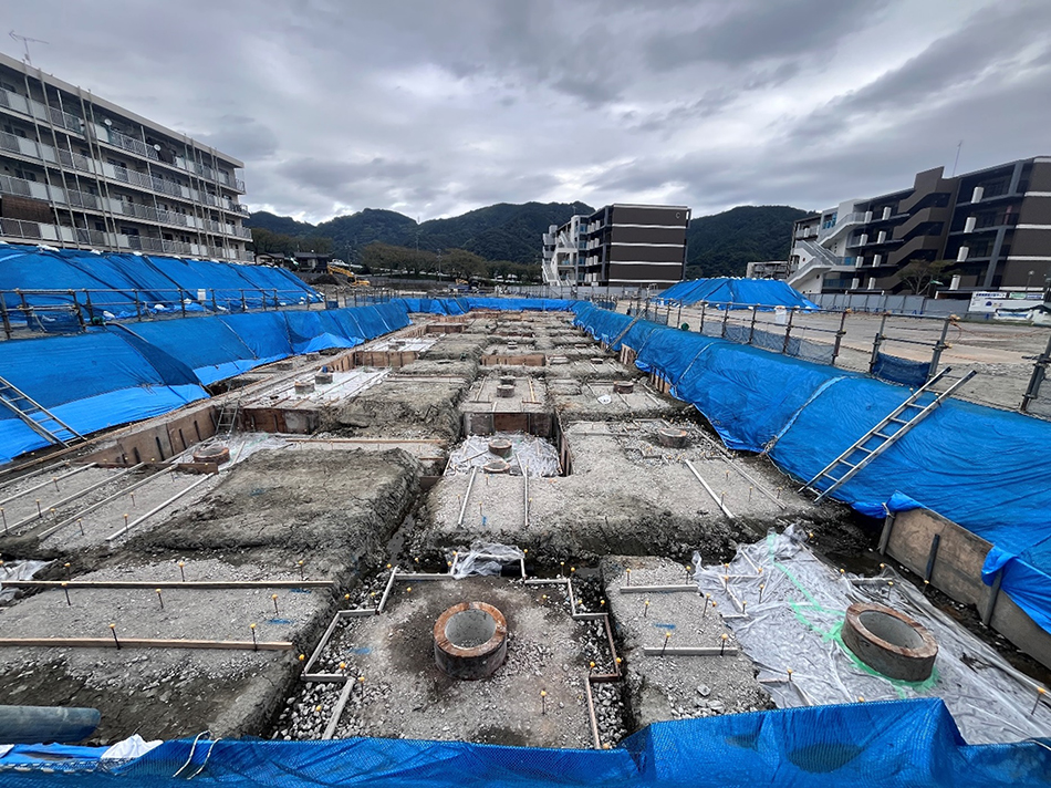 B棟は10月後半より基礎の骨組みとなる鉄筋工事に着手いたします。