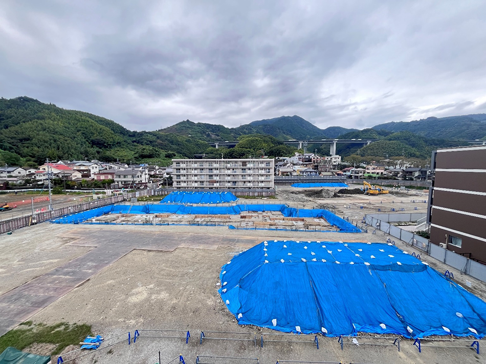 今月はA、B棟共に杭工事が終わり、建物の基礎を造るための掘削工事を行っています。